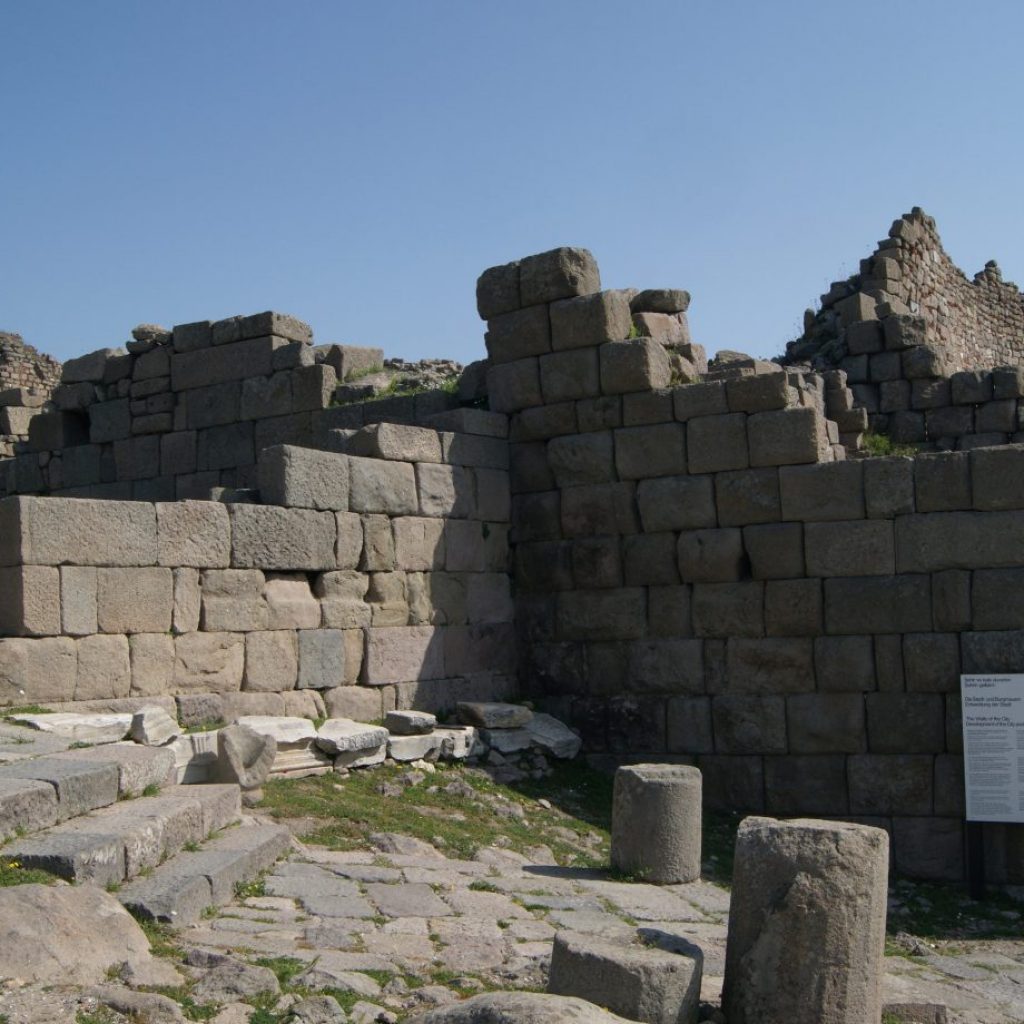 The walls of Pergamon began to be built on the highest point of the city in the 5th and 4th centuries BC before the kingdom was established here. During the period of II Eumenes, the city walls were enlarged to include the surrounding plains. In the 3rd century AD (after the Roman Empire’s weakening), the city was gradually taken inside, and smaller walls were built with re-used stones. The walls built on Kale Hill were also used as fortresses during the Ottoman and Seljuk periods.