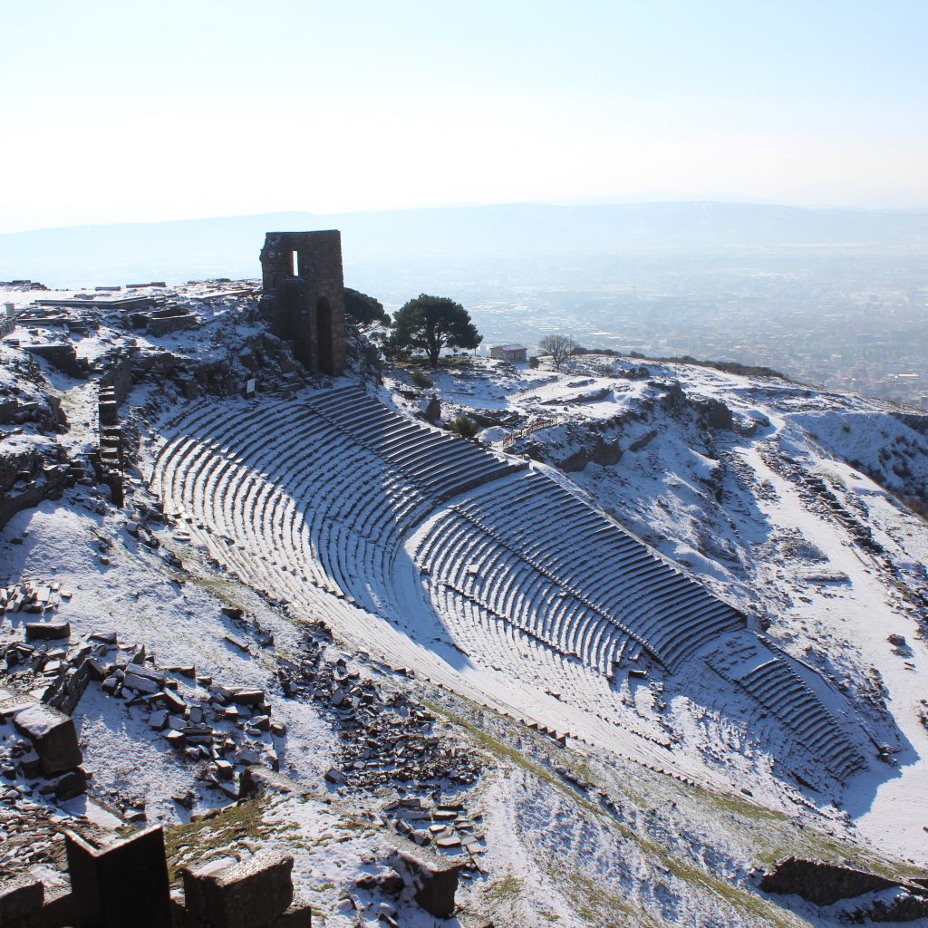The word “acropolis” means “city above” in Ancient Greek. On the other hand, Pergamon Acropolis is called the “castle hill” by the public and is located just above Bergama city center.